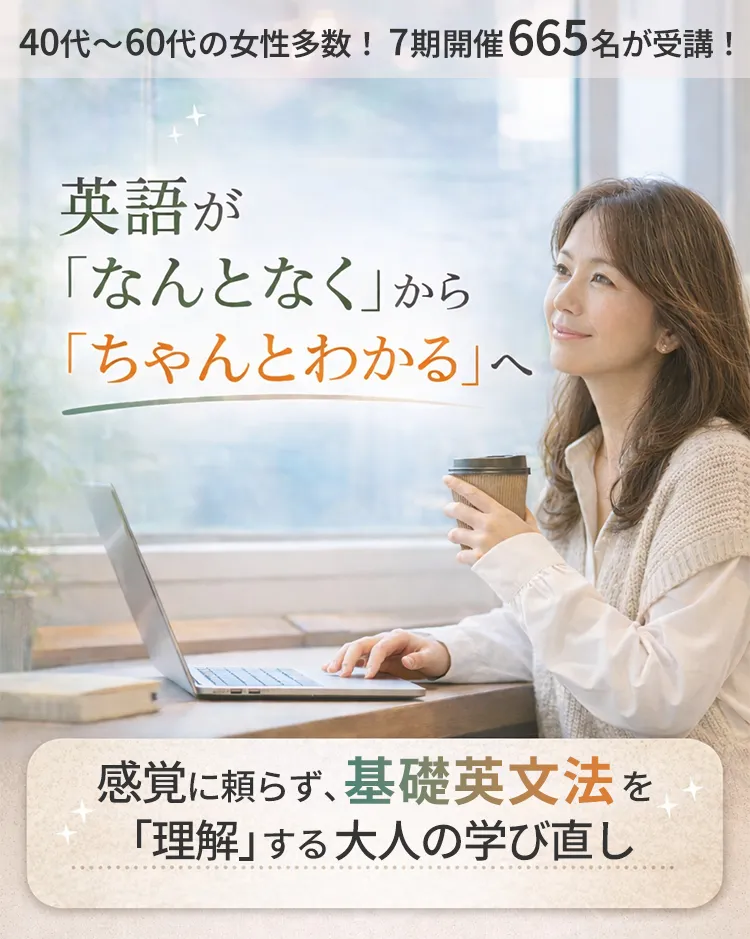 今回ご案内するのは、大人のための英文法コース「英文法の寺子屋ベーシック」体験会です。