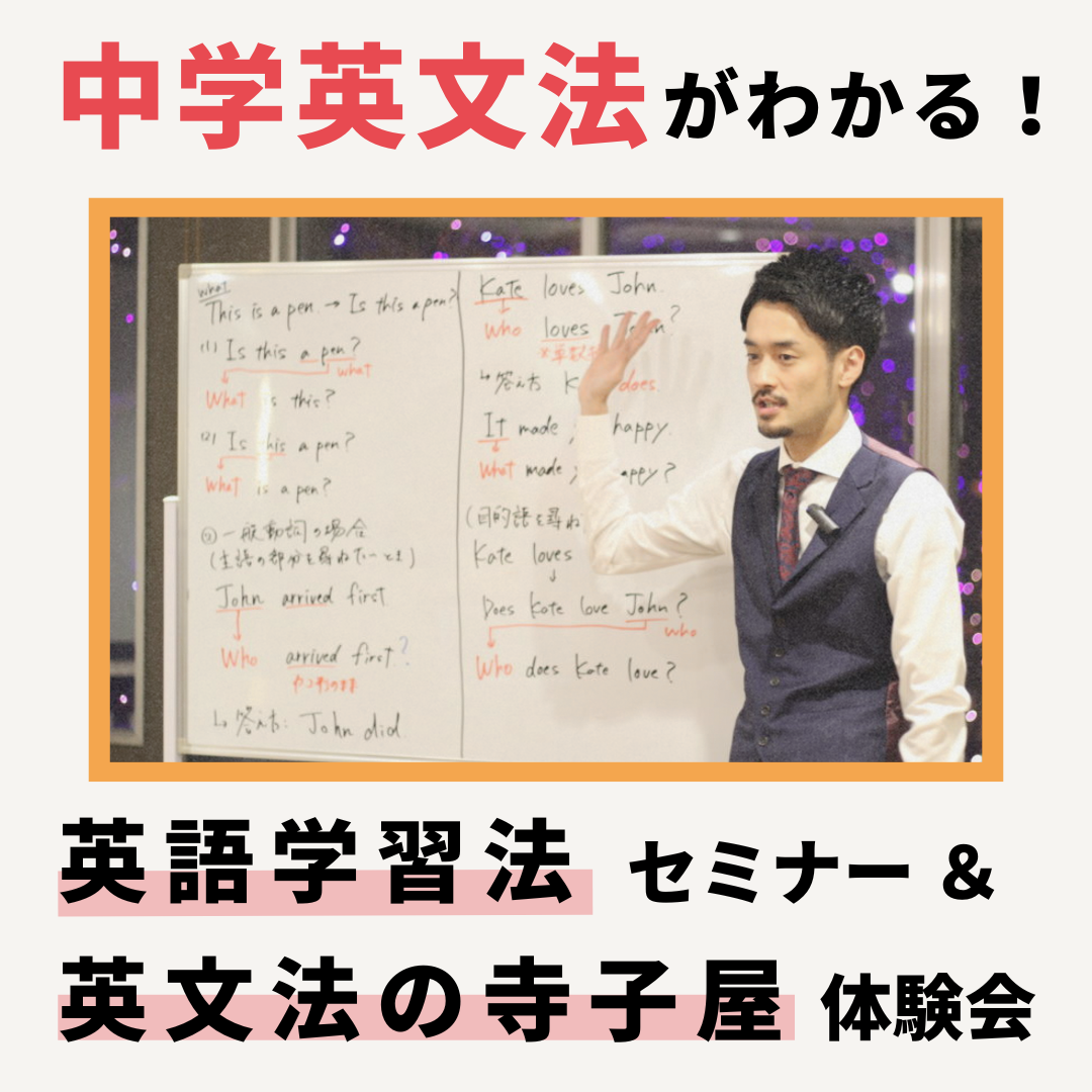 ※「英文法の寺子屋ベーシックコース」の体験会になります。最後にコースのご案内はありますが、強引な勧誘等は一切ありません。
