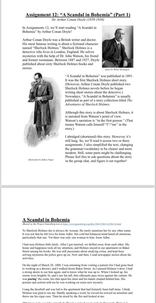 Rebecca先生が月に2回紹介してくれる詩、ショートストーリー、歌詞など、様々な課題を読み、