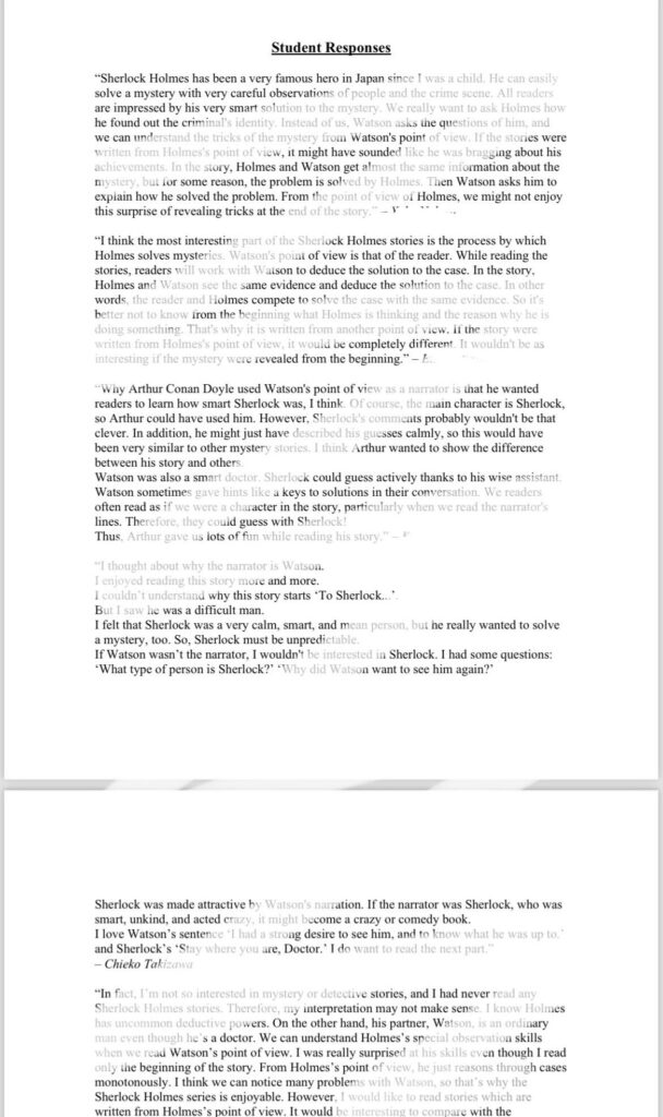 それを英語で意見交換できることで学びが深まります。レベッカ先生からの返事や著者の紹介などもあります。