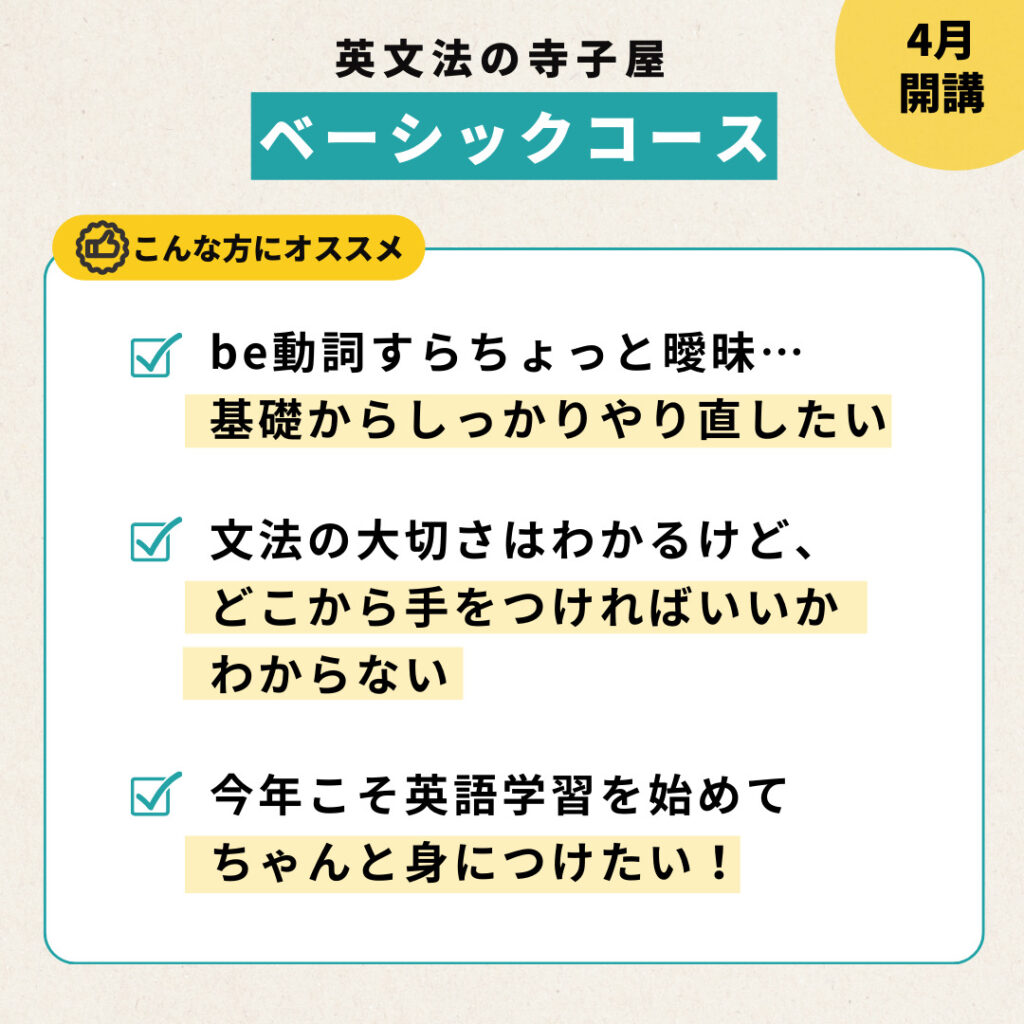 1. 中学英文法がマスターできるベーシックコース