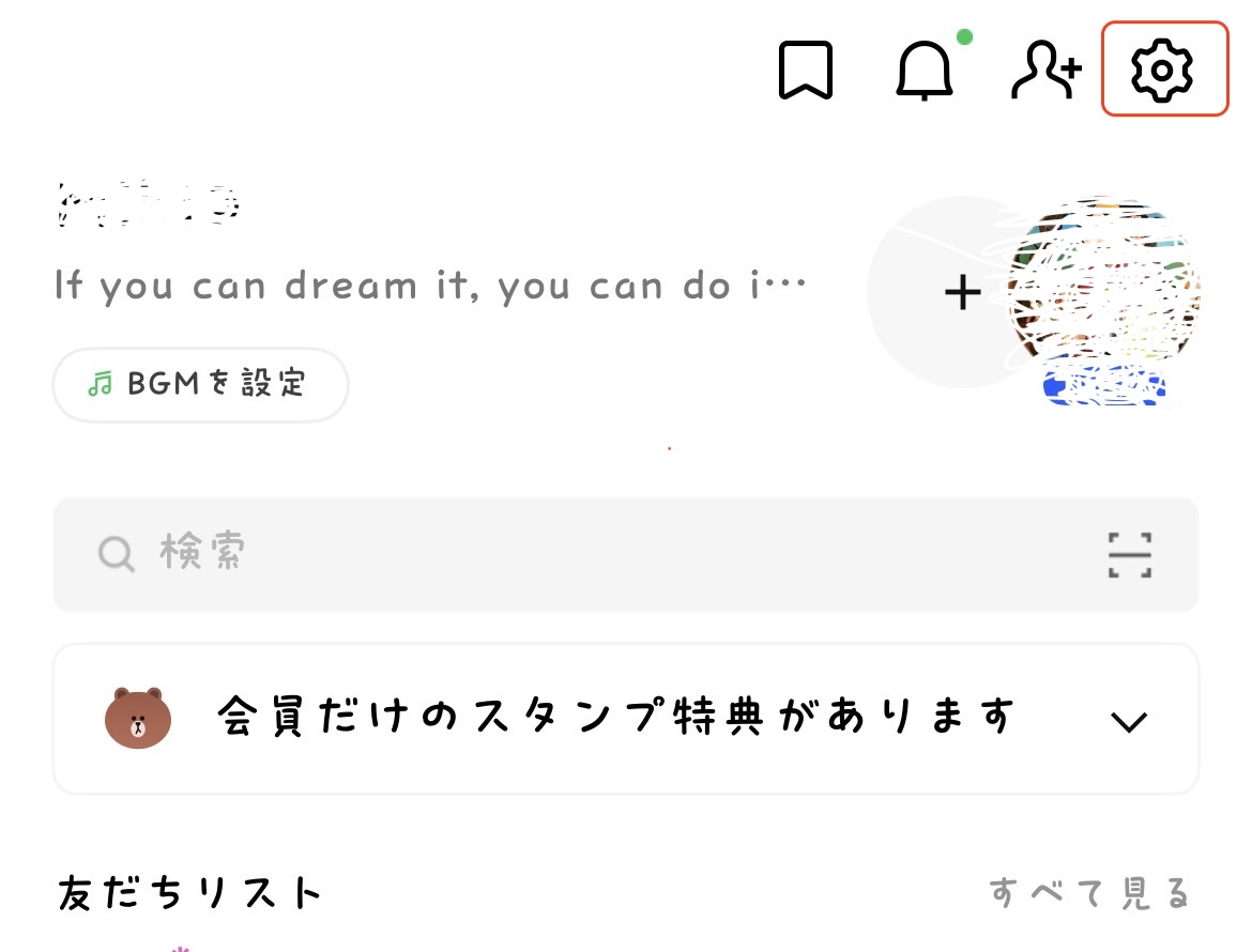 2、ホーム画面右上の歯車のマーク「設定」をタップして開く