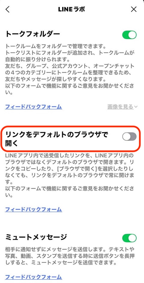 4、「リンクのデフォルトをブラウザで開く」のチェックを外す