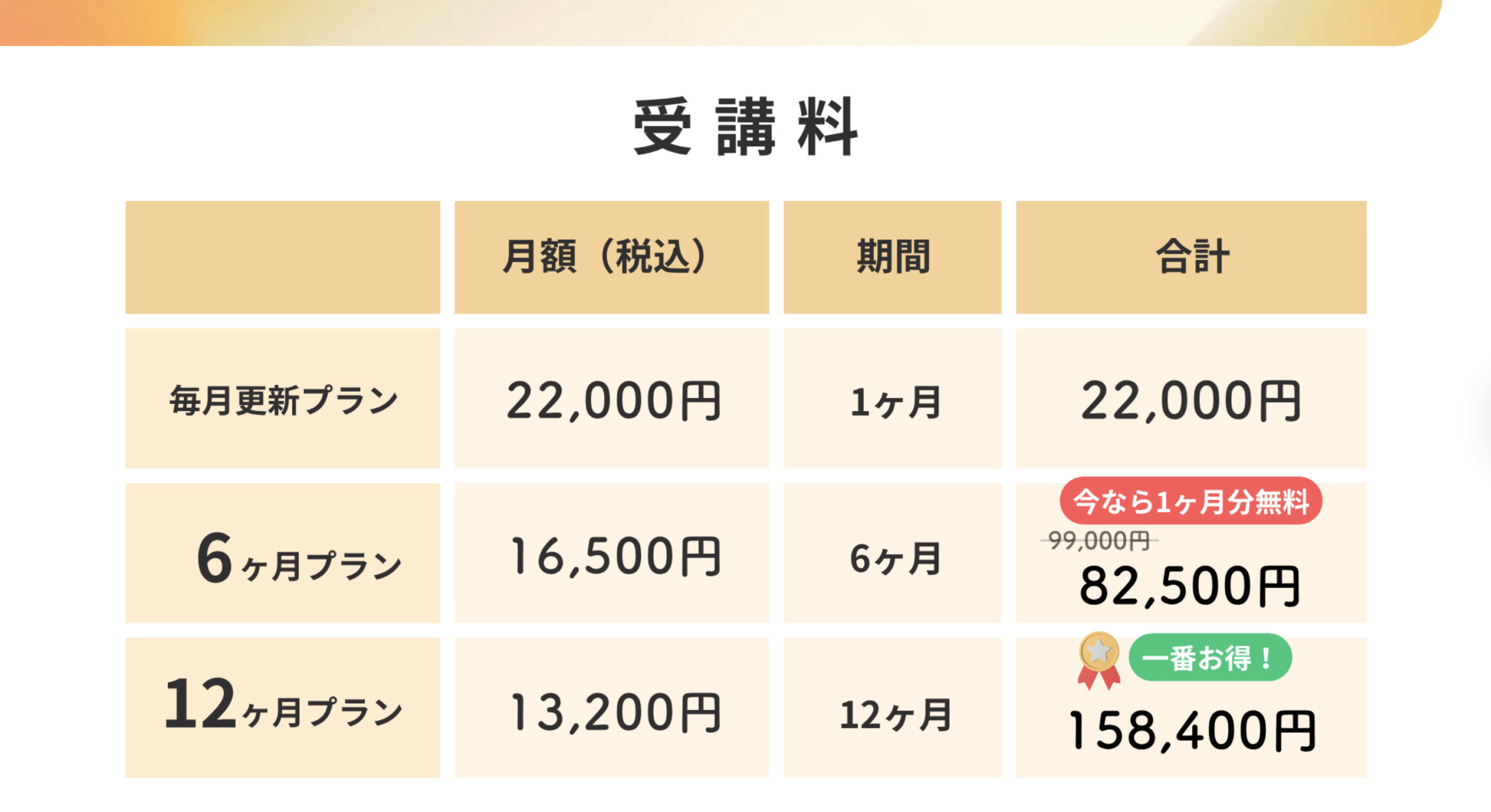 ※税抜価格はそれぞれ毎月更新20,000円、6ヶ月プラン15,000円、12ヶ月プラン12,000円です(全て月額)。