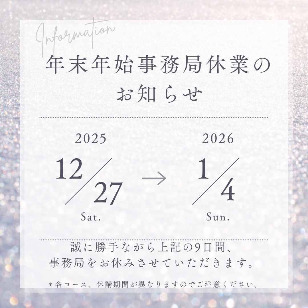 ※受講生の皆様はレッスン休講日と事務局休業日が異なりますのでご注意ください❗️(必ず各コースのLINE情報等をご確認ください)