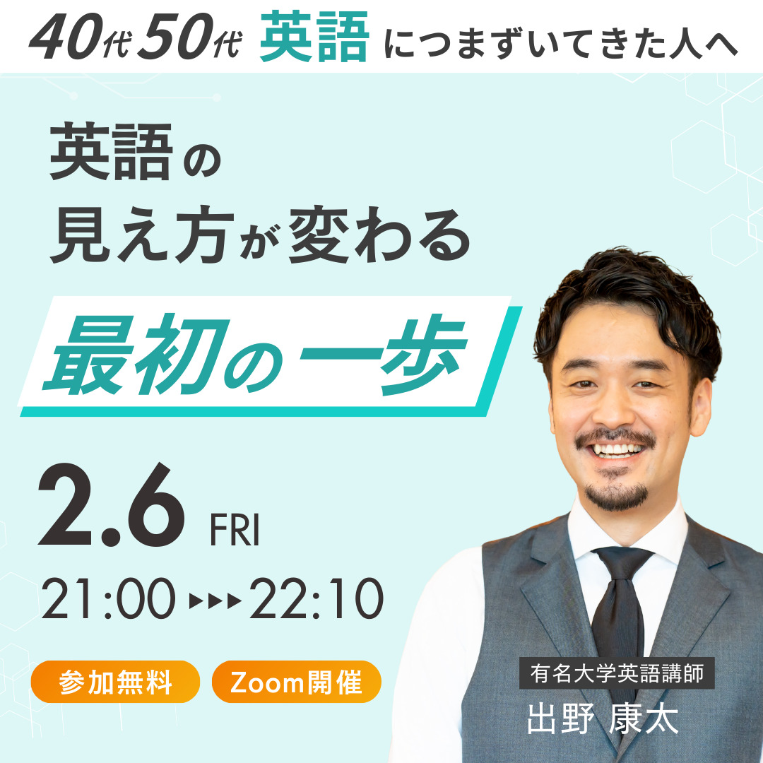 実は、つまずいてきた人は気がついていない「英語の見え方が変わるポイント」があります。この無料Zoom講座では、初心者のための最初の一歩となるそのポイントを、現役の大学英語講師がわかりやすく解説します。